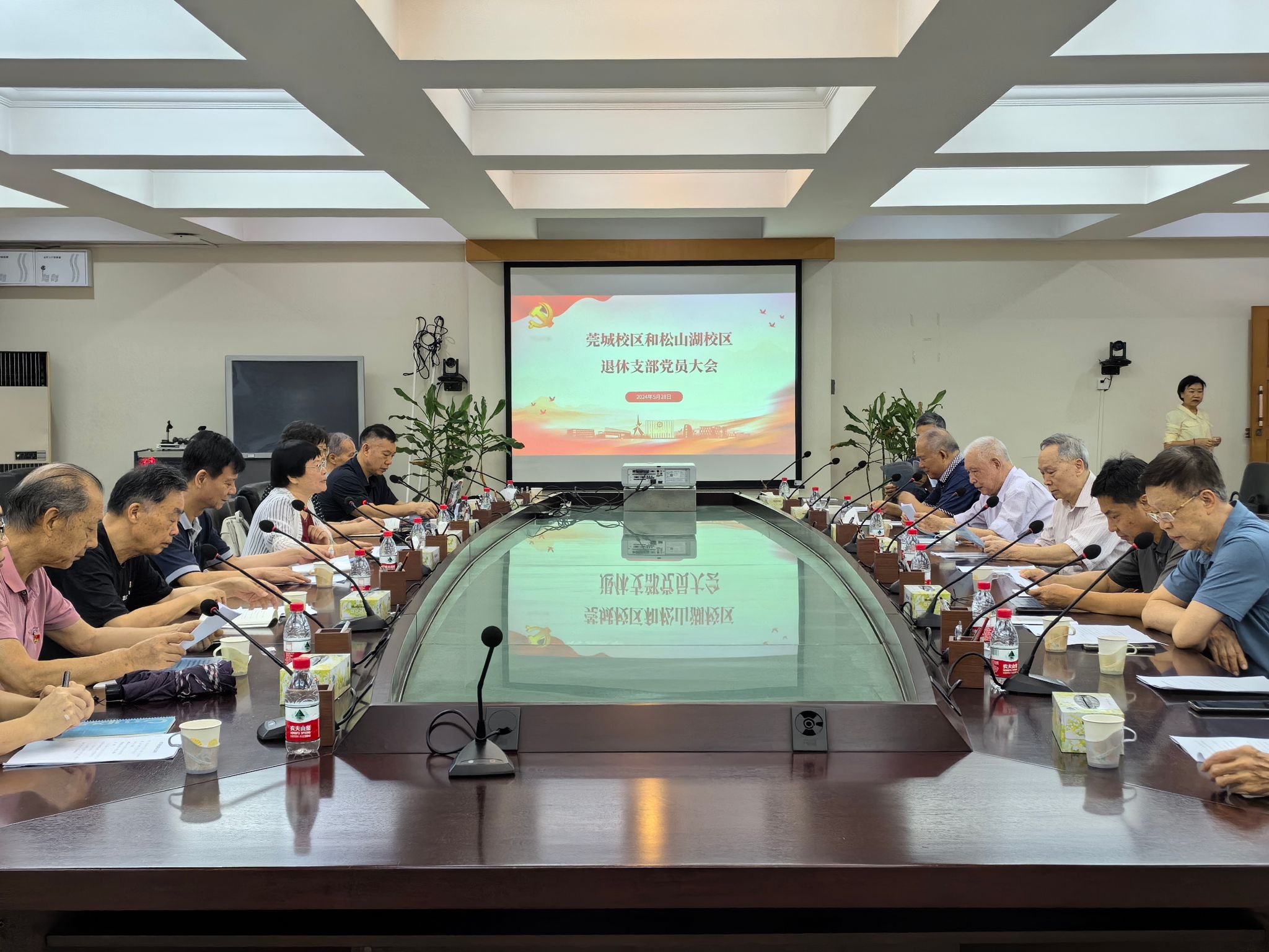 5月28日,sunbet官网莞城校区和松山湖校区退休党支部召开支部党员大会,开展党纪学习教育,学习习近平总书记关于党纪学习教育的重要讲话和重要指示精神、《中国共产党纪律处分条例》以及《离退休干部党员纪律告知书》。学校机关党委和人力资源部联合组织了此活动,校机关党委书记何献青、校人力资源部副部长郭智强、校安全保卫部副部长王平,以及退休支部党员等参加了活动。会议由莞城校区退休党支部书记黄碧莲同志主持。