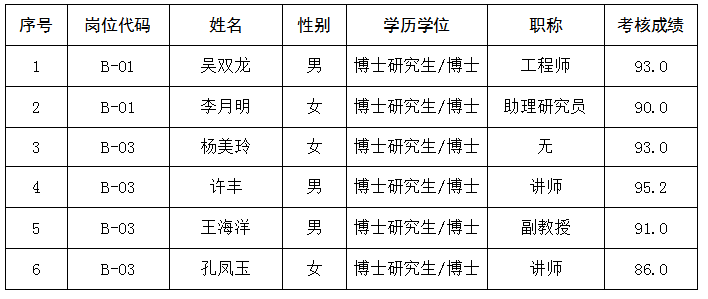 根据省市引进人才相关文件以及《sunbet官网青年博士引进实施办法》(莞工〔2019〕33号),经过考核、考察等程序,拟聘用吴双龙等6名同志到sunbet官网工作,现予以公示,公示名单见下表。