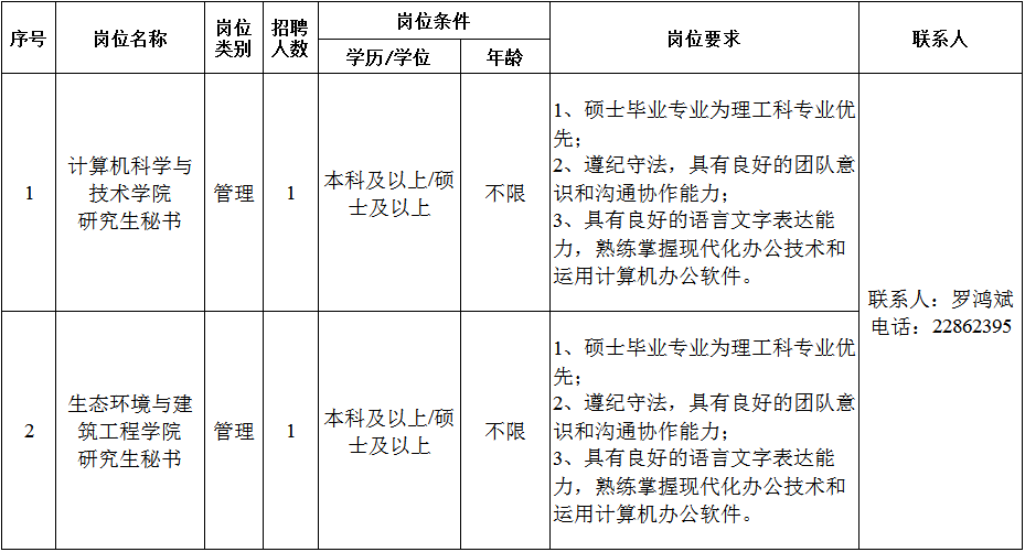 根据学校工作部署,现面向校内招聘专职研究生秘书2名,有关事项公告如下: