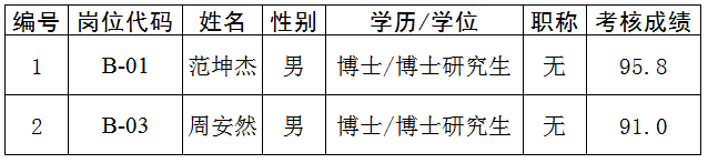 根据省市引进人才相关文件以及《sunbet官网青年博士引进实施办法》(莞工〔2019〕33号),经过考核、考察等程序,拟聘用范坤杰等2名同志到sunbet官网工作,现予以公示,公示名单见下表。