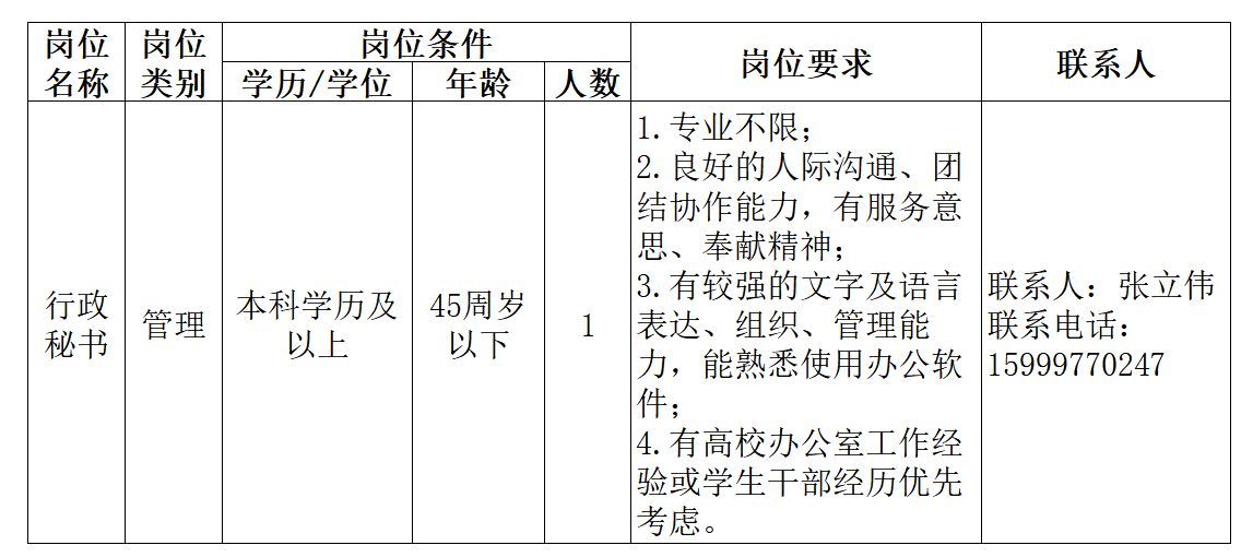 根据学校工作部署,现面向校内招聘马克思主义学院行政秘书1名,有关事项公告如下: