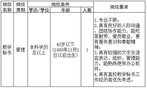 根据学校工作部署,现面向校内招聘网络空间安全学院教学秘书1名,有关事项公告如下: