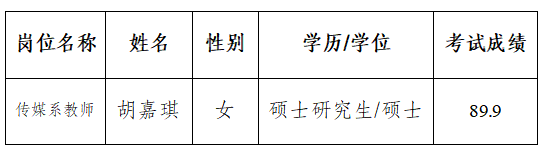 根据《sunbet官网全日制聘用人员招聘管理办法》(莞工〔2020〕65号)的有关规定,经过报名、资格审查、考试、体检及考察环节,胡嘉琪确定为文学与传媒学院全日制聘用专任教师拟聘用人选,现予以公示,公示名单如下: