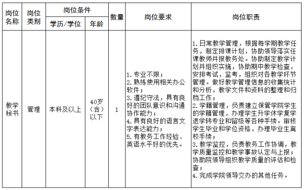 根据学校工作部署,现面向校内招聘教学秘书岗位,有关事项公告如下: