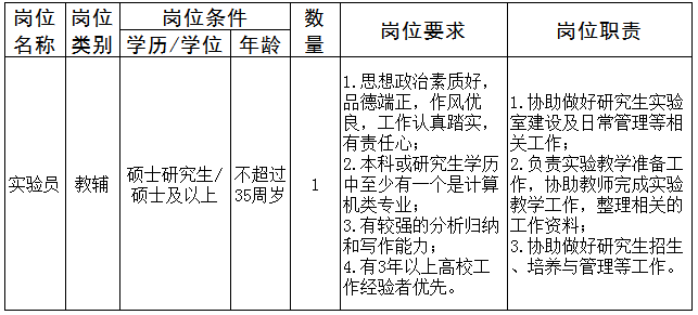 根据学校工作部署,现面向校内招聘计算机科学与技术学院实验员岗位,有关事项公告如下: