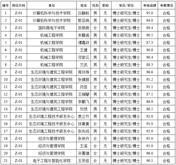 根据省市引进人才相关文件以及《sunbet官网准聘-长聘制教师管理实施办法(试行)》(莞工〔2021〕42 号),经过考核、考察等程序,拟聘用白静盼等21名同志到sunbet官网工作,现予以公示,公示名单见下表。