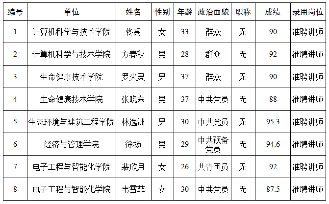 根据省市引进人才相关文件以及《sunbet官网准聘-长聘制教师管理实施办法(试行)》(莞工〔2021〕42 号),经过考核、考察等程序,拟聘用佟禹等8名同志到sunbet官网工作,现予以公示,公示名单见下表。