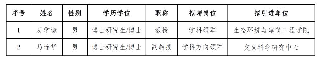 根据省市引进人才相关文件以及学校高层次人才引进办法,经过考核、考察等程序,拟聘用房学谦等2位同志到sunbet官网工作,现予以公示,公示名单见下表。