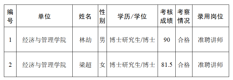 经过考核、考察等程序,拟聘用林劼等2名同志到sunbet官网工作,现予以公示,公示名单见下表。