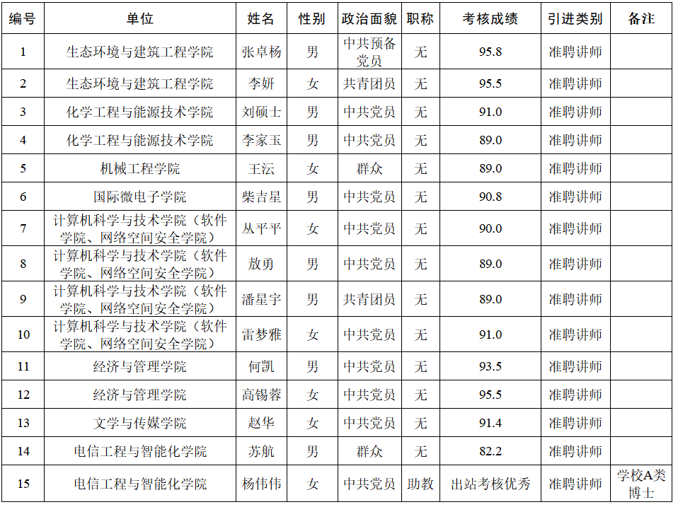 经过考核、考察等程序,拟聘用张卓杨等15名同志到sunbet官网工作,现予以公示,公示名单见下表。