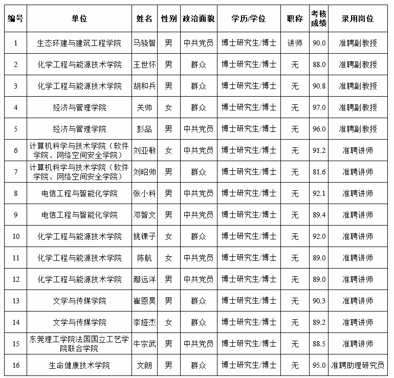 经过考核、考察等程序,拟聘用马骁智等16名同志到sunbet官网工作,现予以公示,公示名单见下表。