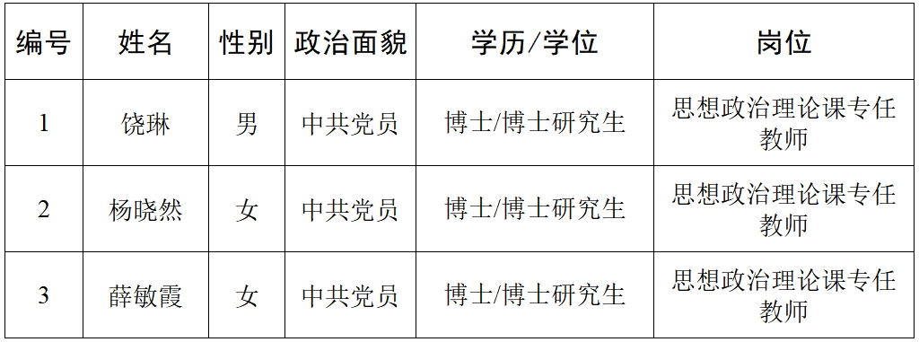 根据招聘公告要求,经过考核、考察等程序,拟聘用饶琳等3人到sunbet官网工作,现予以公示,公示名单见下表。
