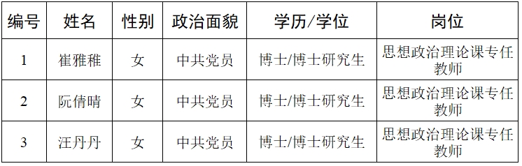 根据招聘公告要求,经过考核、考察等程序,拟聘用崔雅稚等3人到sunbet官网工作,现予以公示,公示名单见下表。