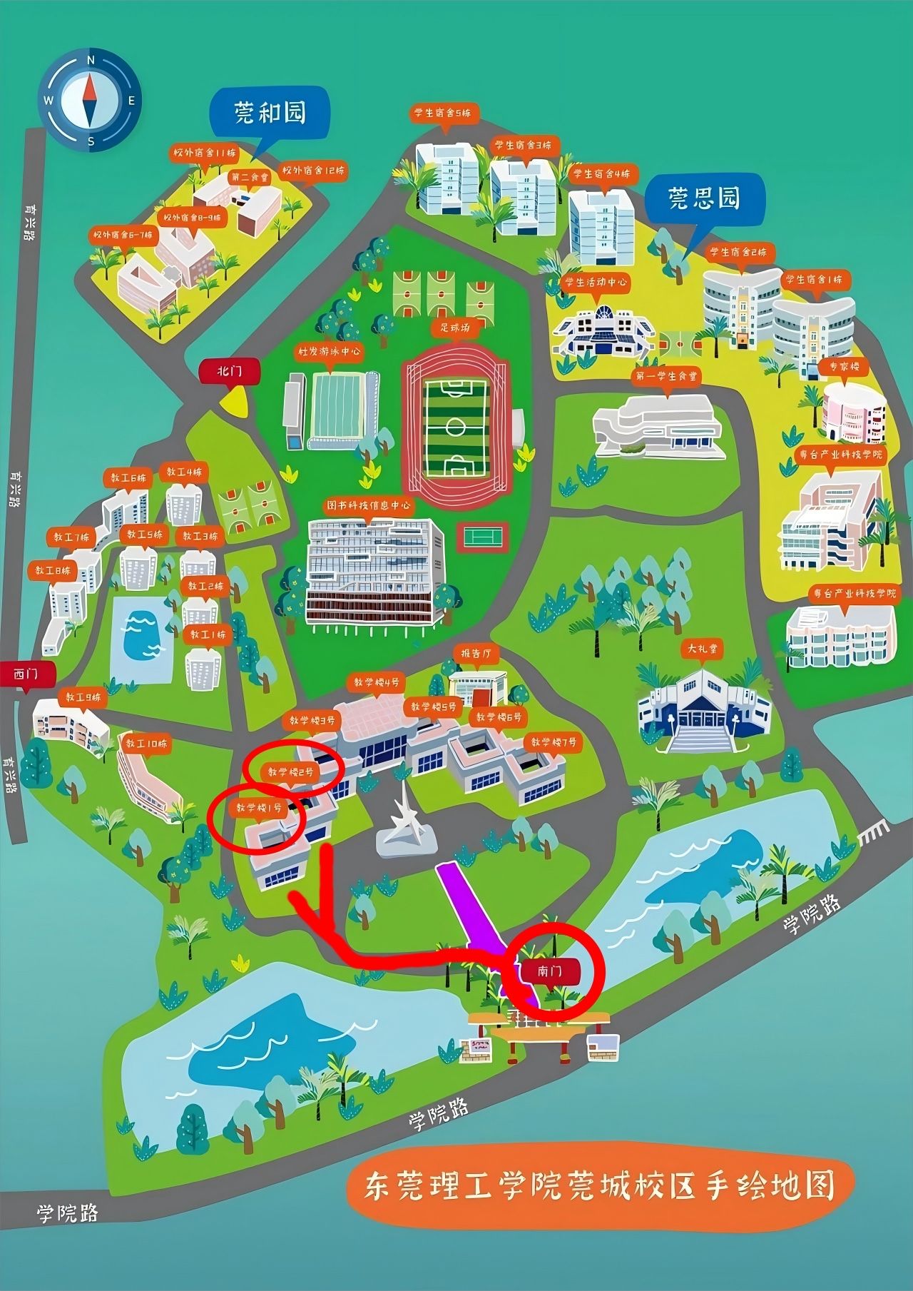 sunbet官网(莞城校区)1号、2号楼 ( 地址: 广东省东莞市莞城街道学院路251号,导航地点:莞城街道学院路251号sunbet官网南门) 。所有考生凭准考证+有效期内的居民身份证/港澳台居民居住证/港澳居民来往内地通行证/台湾居民来往大陆通行证(五年有效期) 从南门步行进场(路线详见地图)。建议考生乘坐公共交通来校, 校外车辆不允许驶入校园。