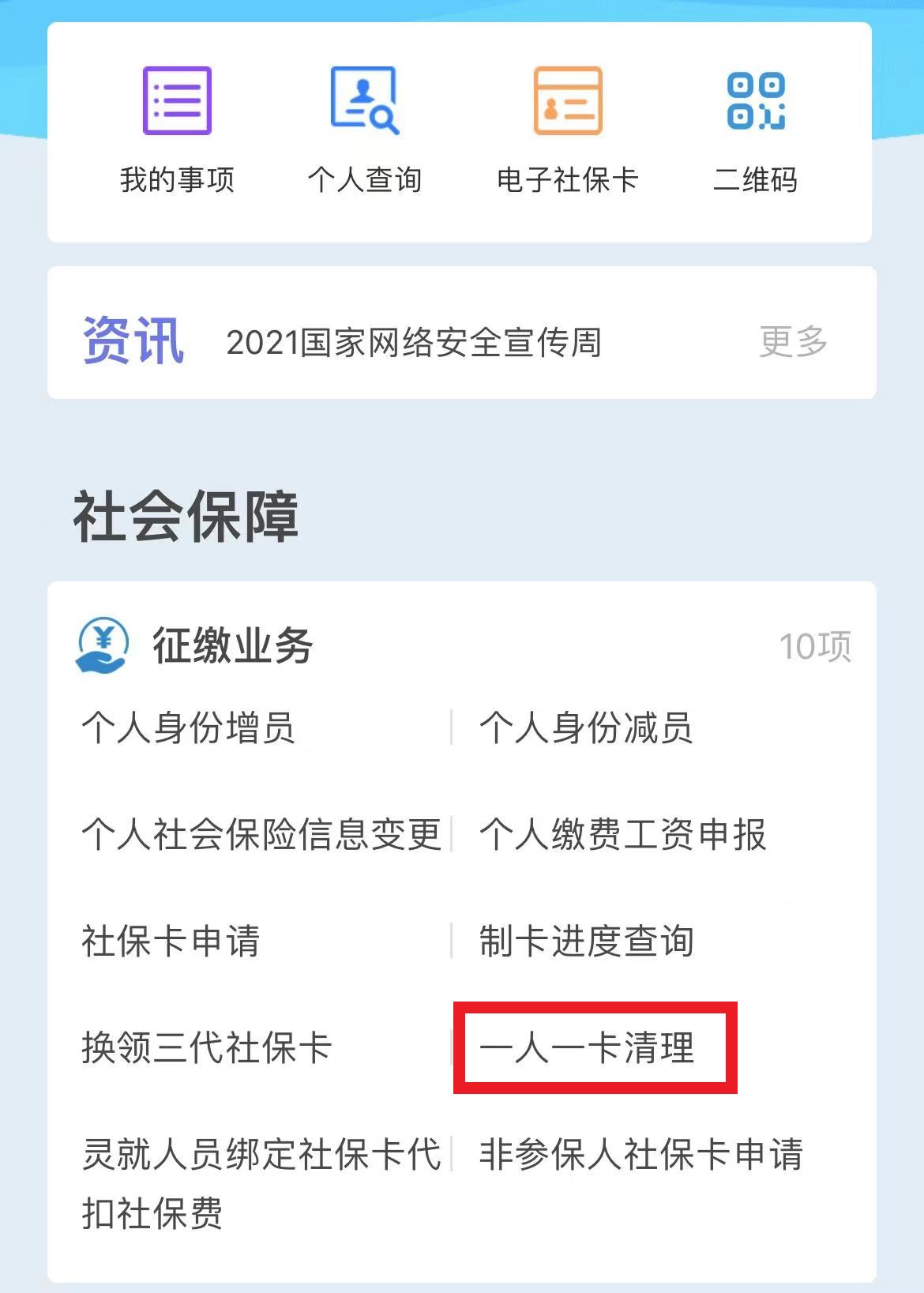进入“东莞人社”小程序,点击“一人一卡清理”,按提示操作对广东省非东莞社保卡进行清理。