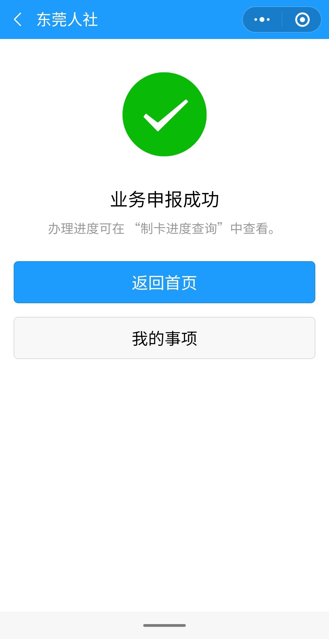 打开微信进入“东莞社保”公众号,点击“社保服务”-“业务办理”-“社保卡业务”-“社保卡申请”。