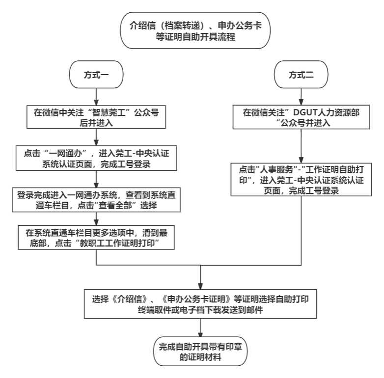 人事科-介绍信、公务卡申办证明等自助办理流程图