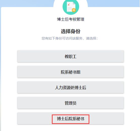 6、学院院办秘书组登录人力资源管理系统,选择【博士后院系秘书】角色,进入审核页面,审核博士后中期、期满考核业绩情况,同意通过的选择通过后提交。